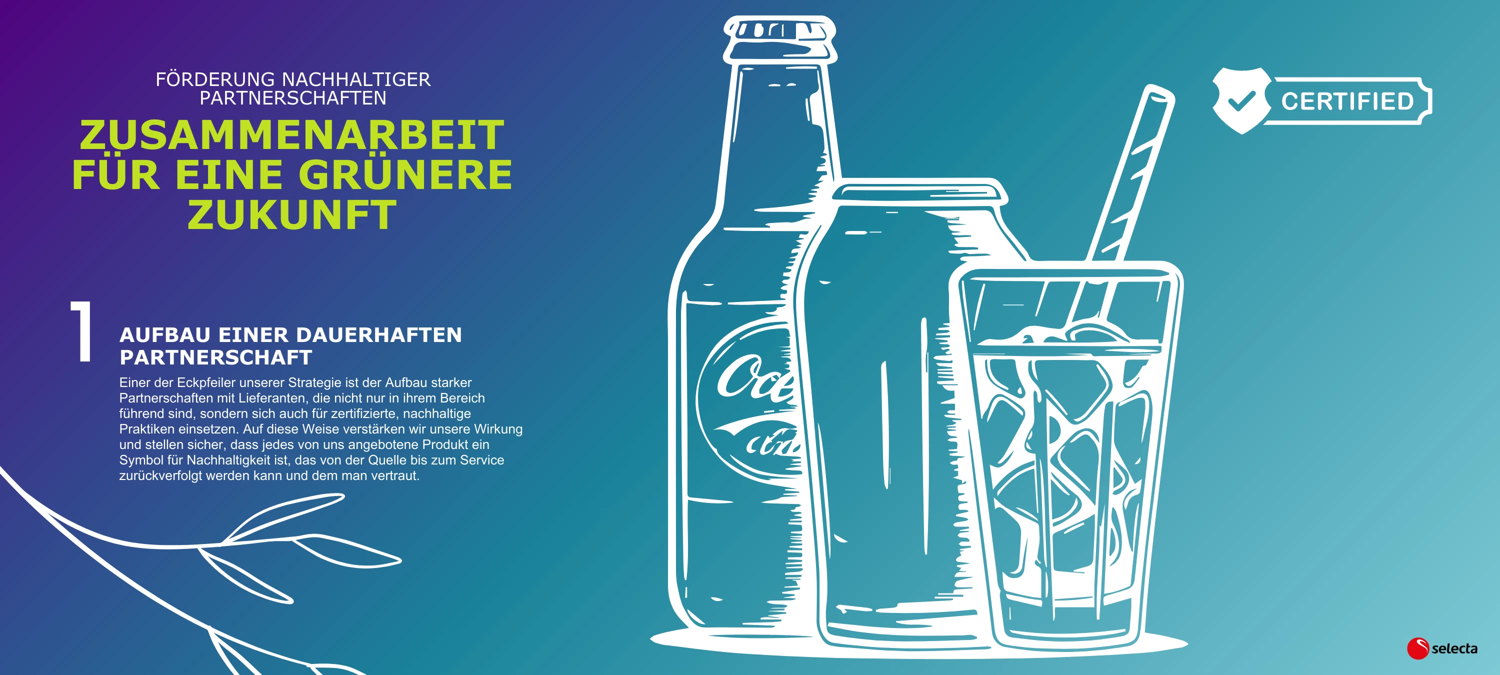 Unser Ansatz ist systematisch und kundenorientiert. Durch unser Engagement für zertifizierte Produkte steht Selecta an der Schnittstelle von Qualität und Nachhaltigkeit und bietet unseren Kunden Produkte, die nicht nur in Geschmack und Leistung überragend, sondern auch in Bezug auf Umwelt- und Ethikqualität vorbildlich sind. Dieses Engagement stärkt unsere Rolle als vertrauenswürdiger Partner im Bereich Nachhaltigkeit, der sich für die Förderung eines umweltfreundlicheren und verantwortungsvolleren Industriestandards einsetzt.